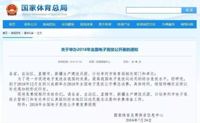 2016年,國務院總理主持召開國務院常務會議,其中提到“發展電子競技與其他相關體育健身行業休閑產業”。